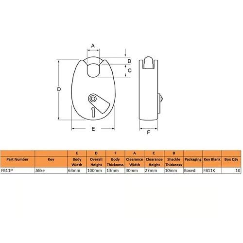Fire Brigade FB11 Open Shackle Galvanised Padlock