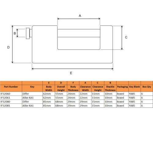 Ifam, Locks and Security, Locks with Extra Cut Keys Available, Manufacturer, Padlocks, ShutterIfam U Series Brass Shutter Padlock Keyed Alike